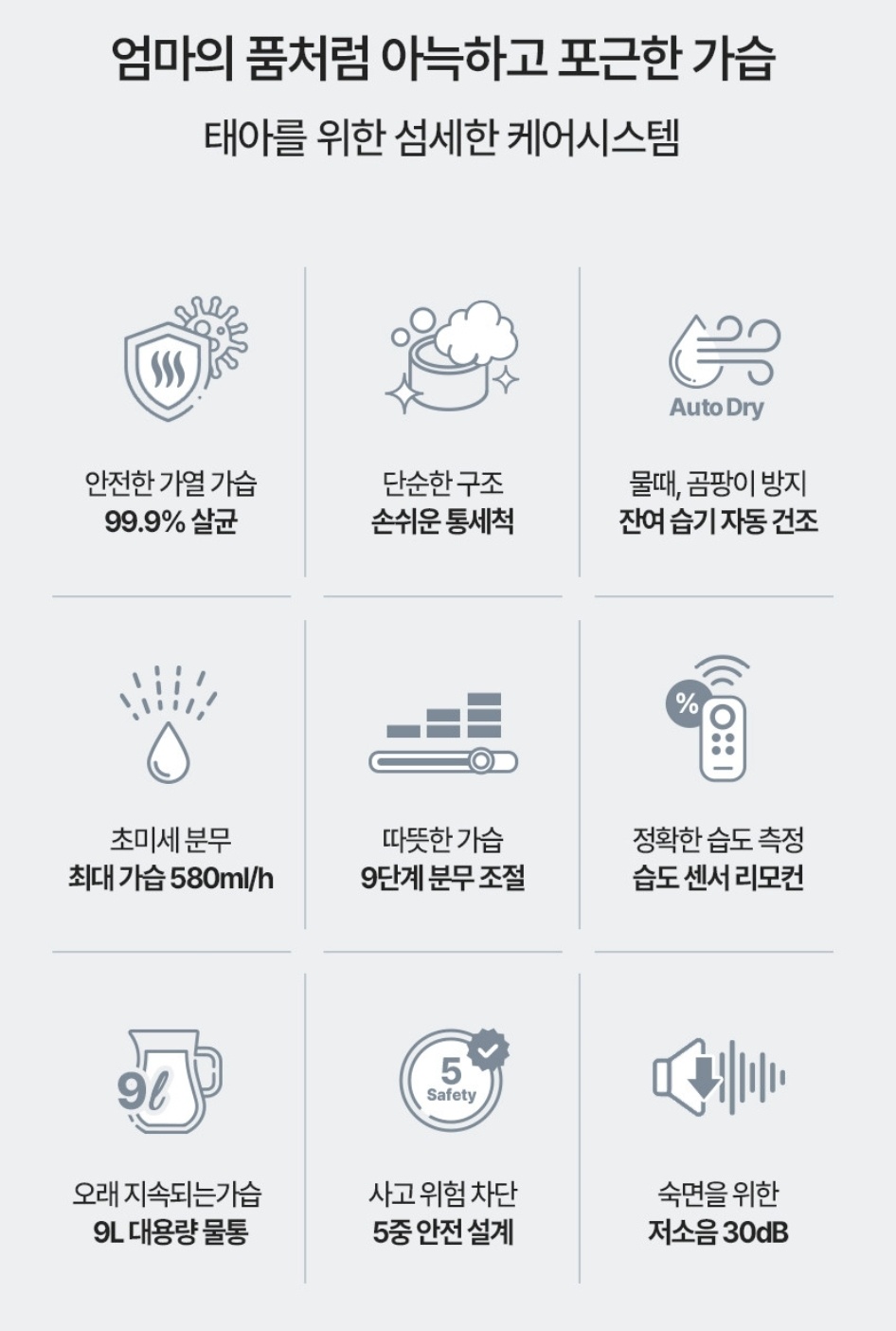 에어메이드 태아 가습기 아쿠아마린 AMH-9002의 주요 기능