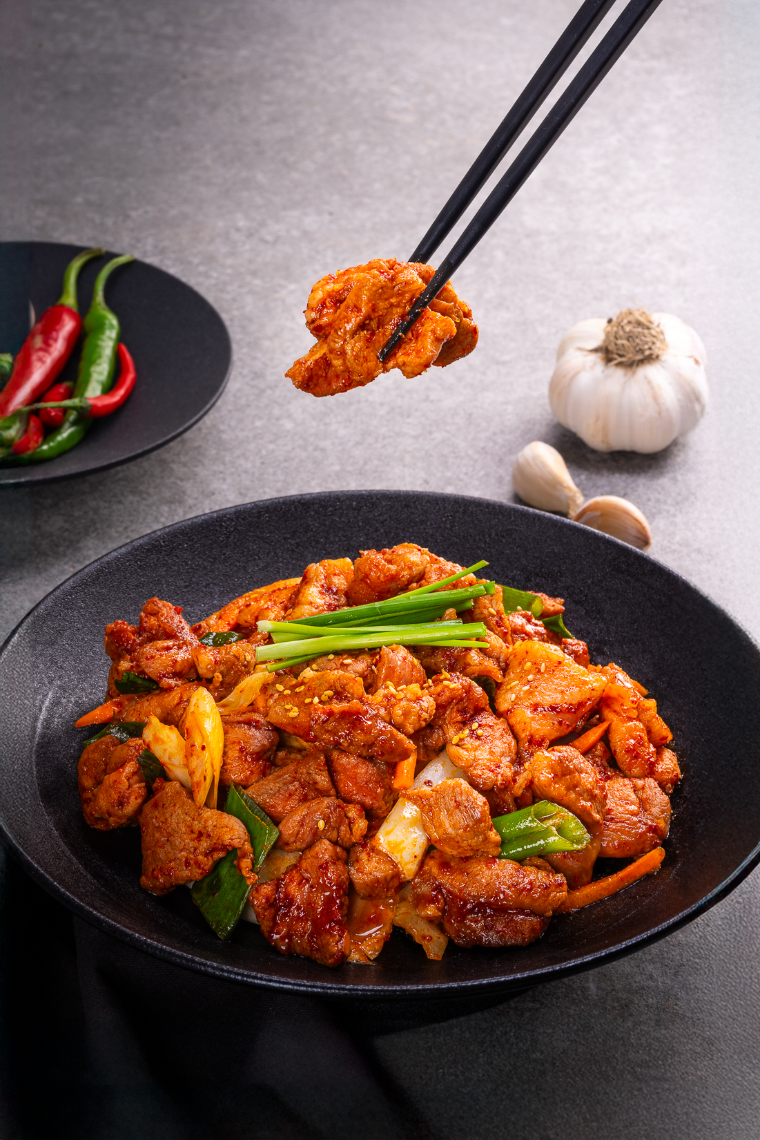 - 돼지고기를 매콤한 양념에 볶아 밥과 함께 먹는 메뉴