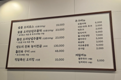 장지리오리농장의 특별한 메뉴
