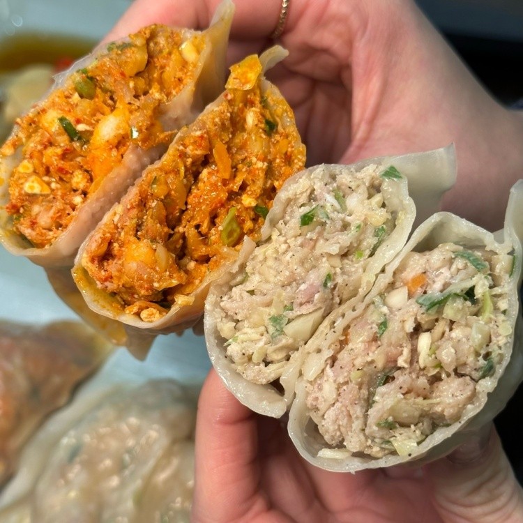 - 김치손만두 (4개 9,000원): 매콤한 김치소로 속이 꽉 찬 김치손만두
