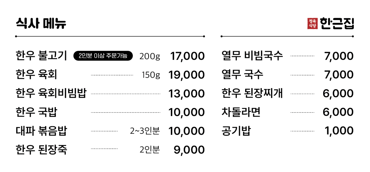 - 다양한 부위 제공: 한근집 팔당에서는 11가지 부위의 한우 암소를 제공하여 다양한 맛과 식감을 즐길 수 있습니다.