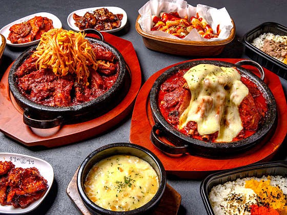 대표 메뉴 – 매운 김치 등갈비 & 매콤 치즈 철판