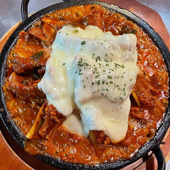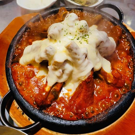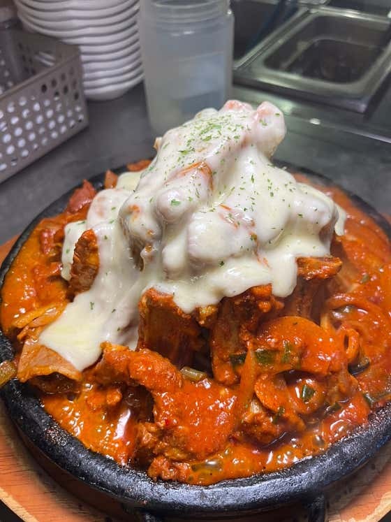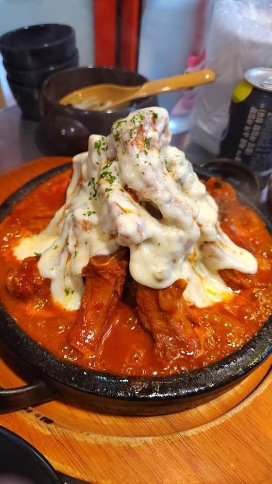 매운 등갈비찜 중에서도 완성도가 높은 메뉴입니다. - 매콤 치즈 철판 (37,000원)