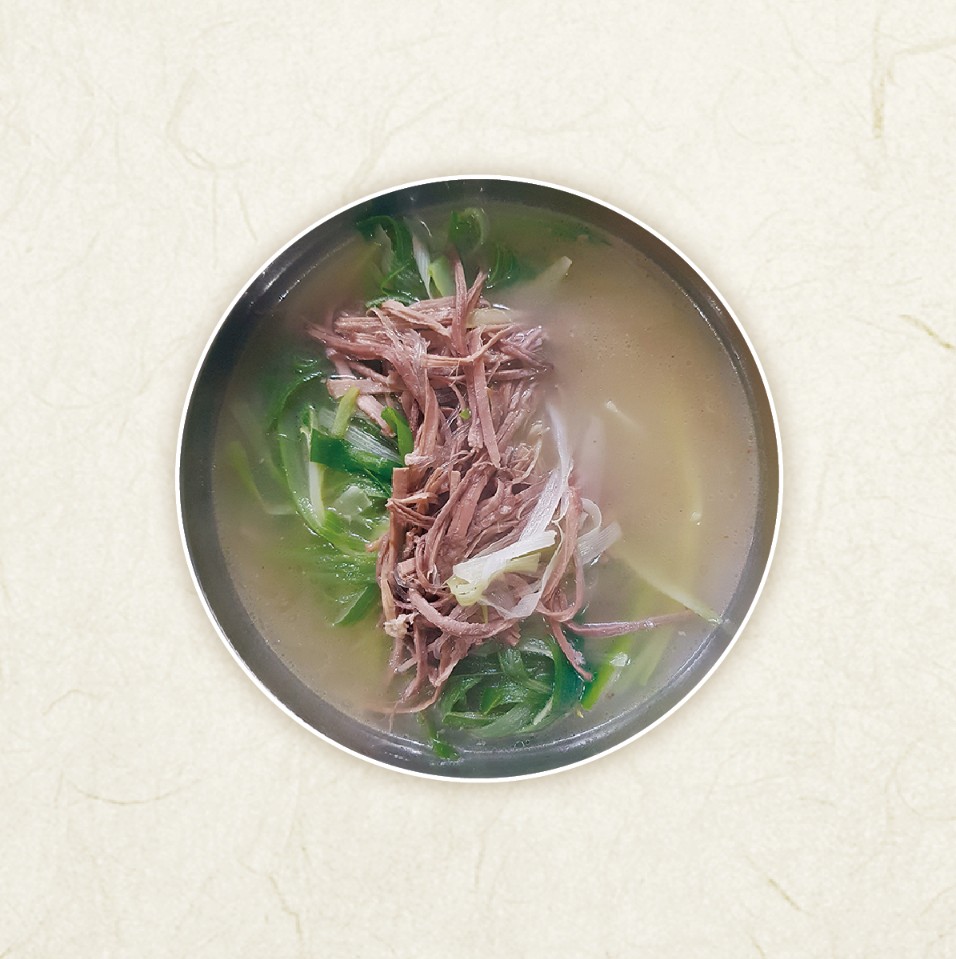 - 한우머리와 사골로 우려낸 깊고 진한 국물