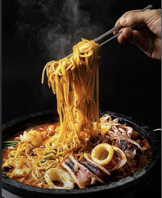 돌판 조리법: 250도의 돌판 위에서 조리되어 음식이 식지 않고, 시간이 지날수록 국물과 양념이 면에 스며들어 맛이 깊어짐
