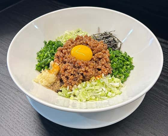 국물 없는 비빔라멘으로, 감칠맛 나는 소스와 다양한 고명을 비벼 먹는 형태입니다.