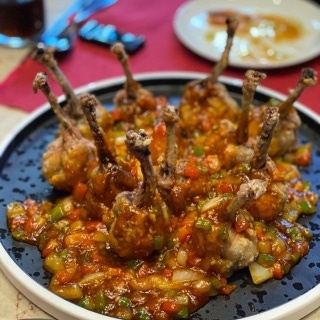 또 다른 인기 메뉴는 '방방샤'라는 이름의 이색 요리입니다. 닭 날개 속에 다진 새우를 채운 후 튀겨낸 요리로, 한입에 닭고기와 새우의 식감을 동시에 느낄 수 있습니다. 비주얼도 독특하고, 간편하게 즐기기 좋아 술안주나 식사 곁들이 메뉴로 인기가 많습니다.