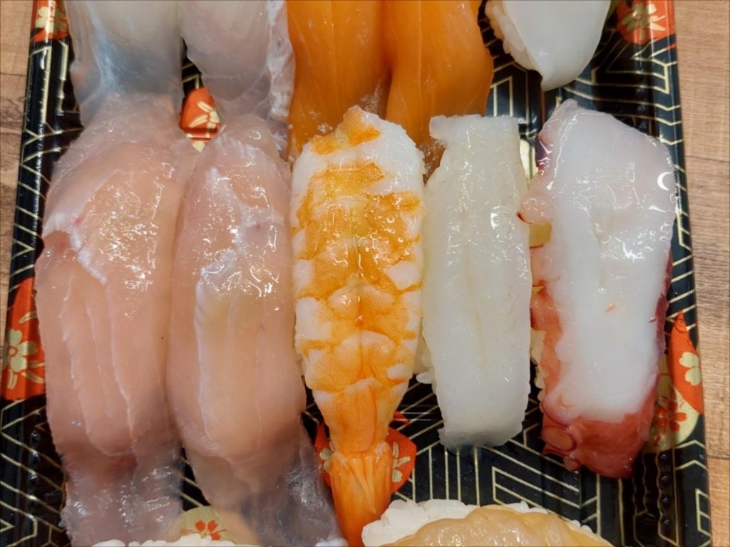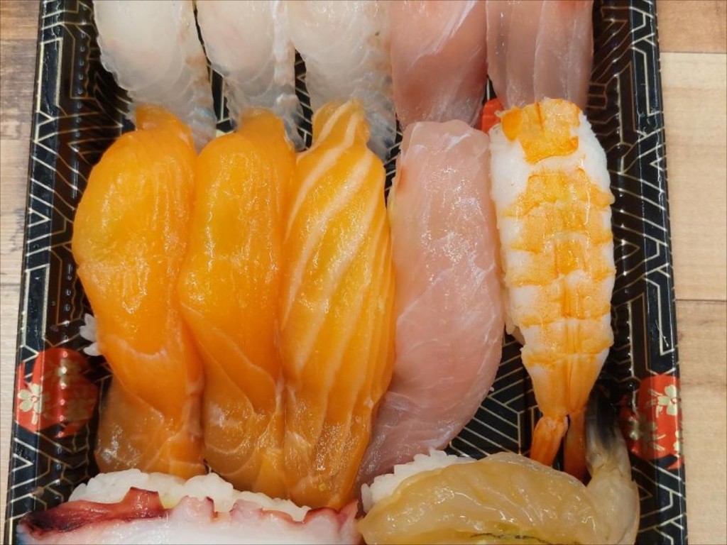 - 참치, 연어, 광어, 초새우, 계란말이, 한치, 오징어, 장어, 유부, 문어 등