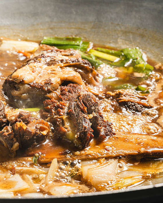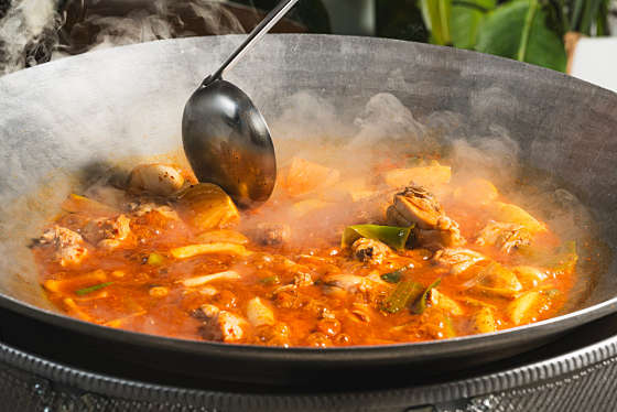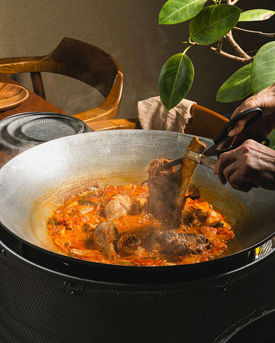 솥뚜껑은 일반적인 철판보다 열전도율이 높고, 음식이 고르게 익어 풍부한 풍미를 더합니다. 이 식당은 대형 화로에 무쇠 솥뚜껑을 얹어 요리하는 방식을 고수하고 있어 식감과 향이 살아 있습니다. 게다가 매콤한 양념과 육즙 가득한 고기, 시원한 국물까지 모두 잡은 맛의 시그니처 3인방이 준비되어 있습니다.