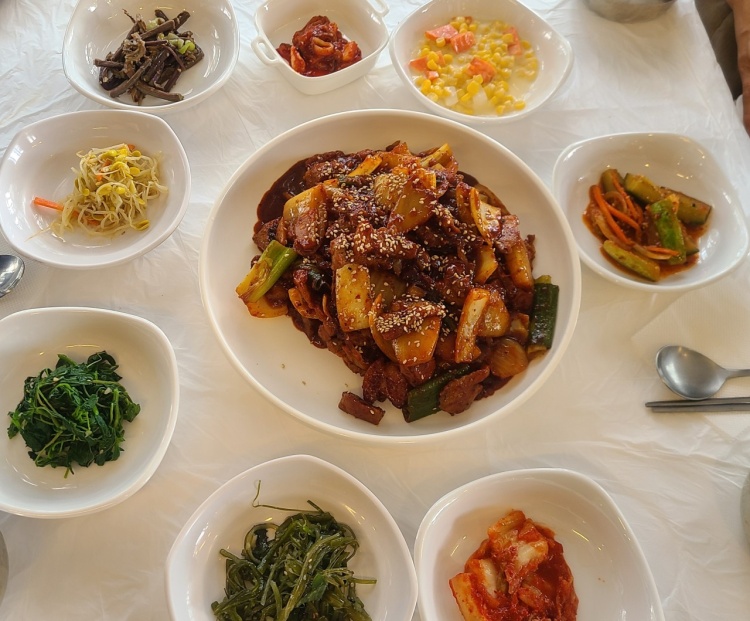- 동해에서 잡은 싱싱한 문어를 매콤한 양념에 볶아낸 요리로, 쫄깃한 식감과 감칠맛이 일품입니다.