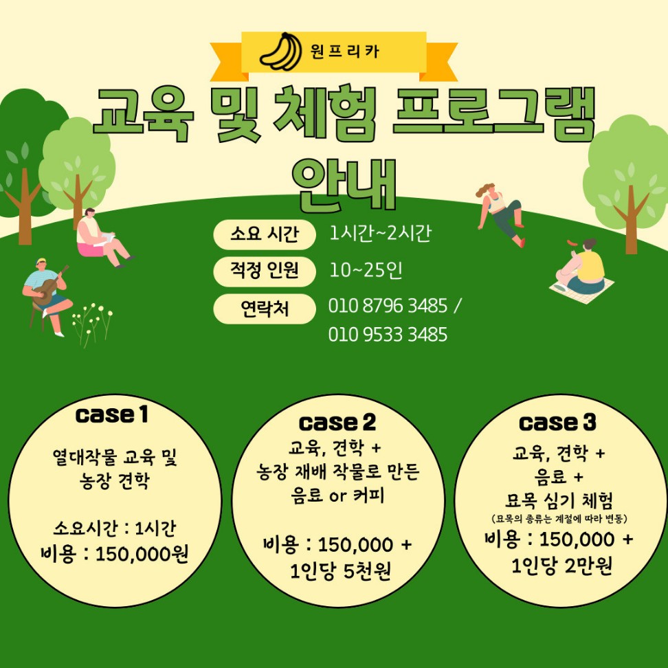 - Case 1: 열대작물 교육 및 농장 견학 (1시간, 150,000원)